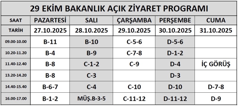 2025 YILI 29 EKİM CUMHURİYET BAYRAMI AÇIK ZİYARET PROGRAMI