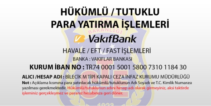 NOT: KANTİN VE DİĞER HARCAMALAR İÇİN SADECE MOBİL BANKACILIKTAN PARA ALIMI YAPILACAKTIR. ATM LERDEN PARA YATIRMAYINIZ.